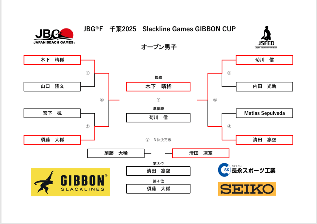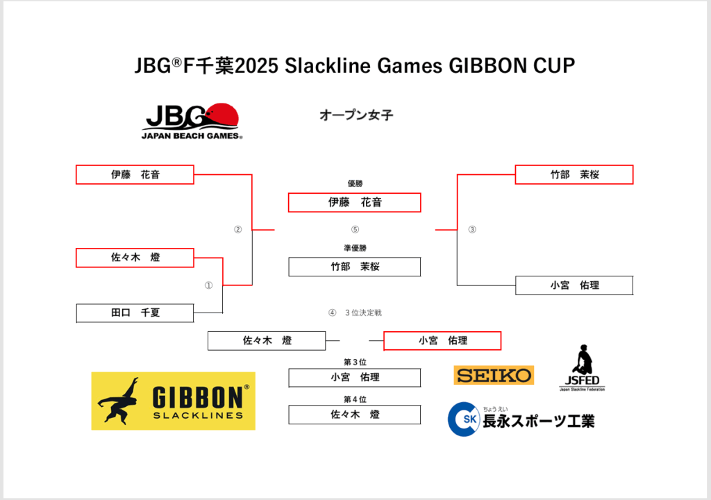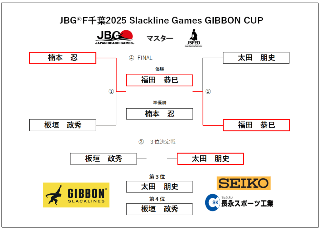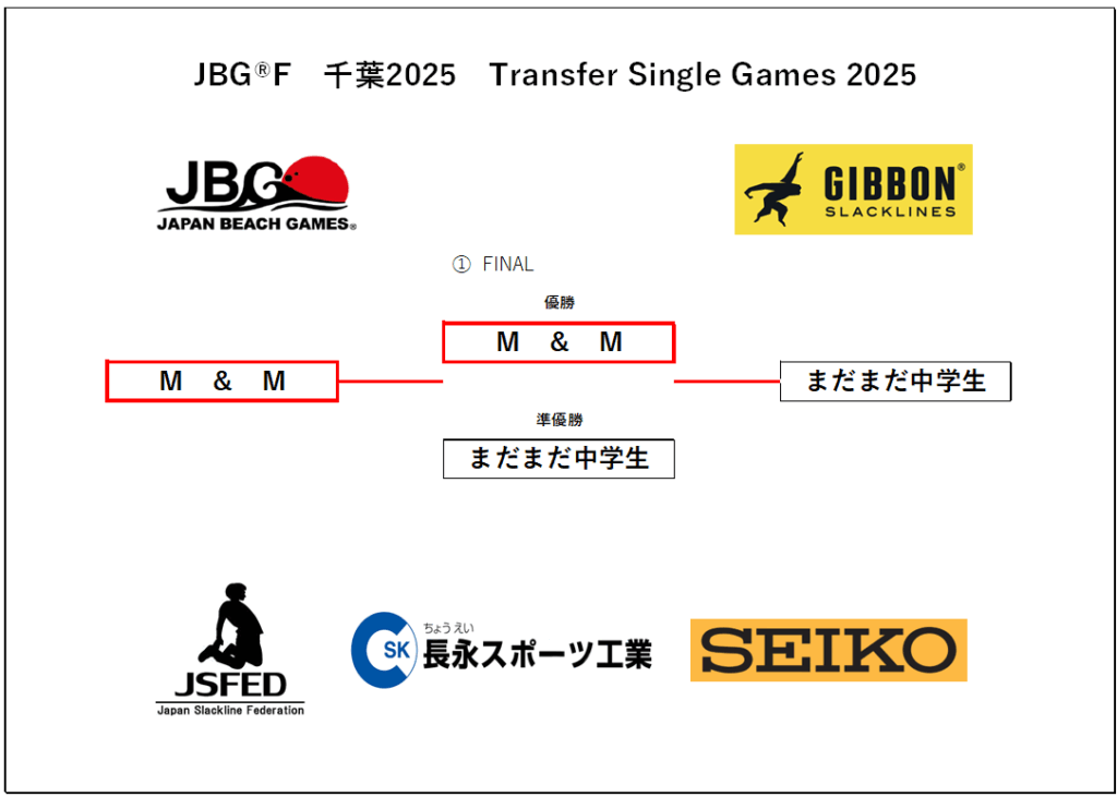 2025-09-08 / 最終更新日時 : 2025-09-08 kyougi JBGF 稲毛 大会結果 2025.9.6 - 9.7 開催 JBG®F 千葉2025 Slackline Games GIBBON CUPJBG®F 千葉2025 Transfer Single Games 2025 本戦トーナメント結果を公開いたします。 コメントを残す コメントをキャンセルメールアドレスが公開されることはありません。 ※ が付いている欄は必須項目ですコメント ※ 名前 ※ メール ※ サイト 次回のコメントで使用するためブラウザーに自分の名前、メールアドレス、サイトを保存する。 Δ